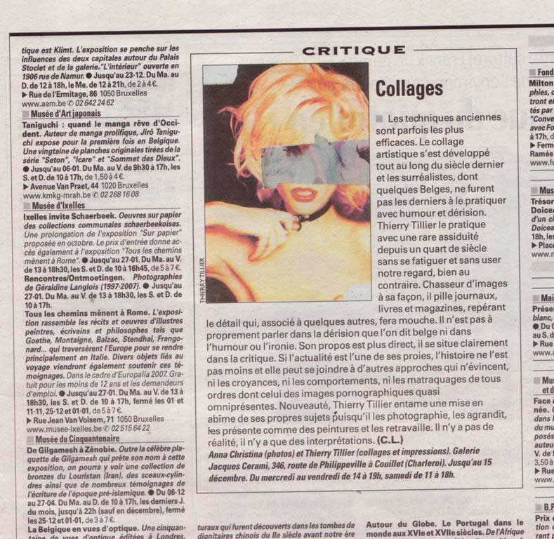 Collages Claude Lorent, LA LIBRE BELGIQUE, Wednesday December 5, 2007