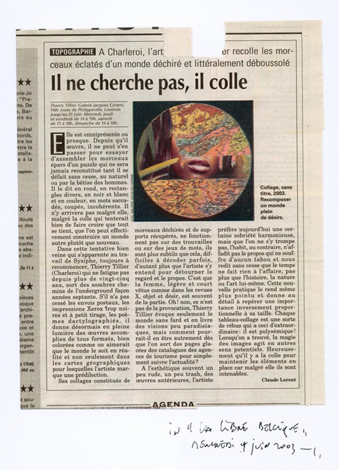 Il ne cherche pas, il colle Claude Lorent, LA LIBRE BELGIQUE, Wednesday June 4, 2003