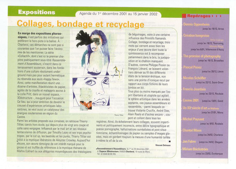 Collages, bondage et recyclage Vincent Delvaux, DDO, December 2001