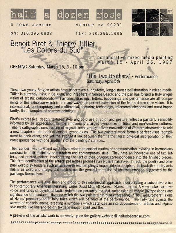 Les colors du sud Half a Dozen Rose, March 15 – April 26, 1997 Los Angeles, USA