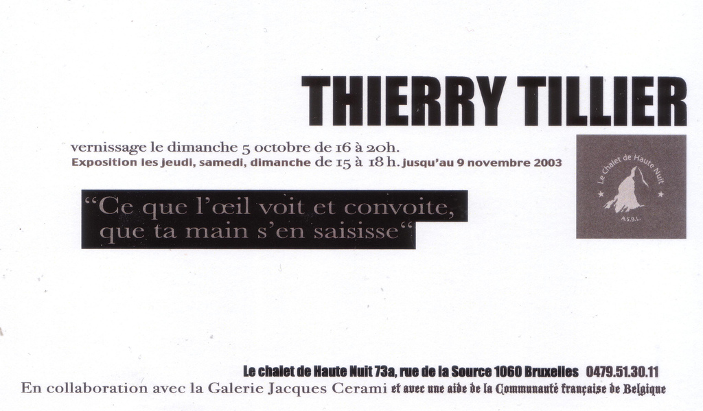 Solo exhibition, Le Chalet de Haute Nuit, October 5 – November 9, 2003