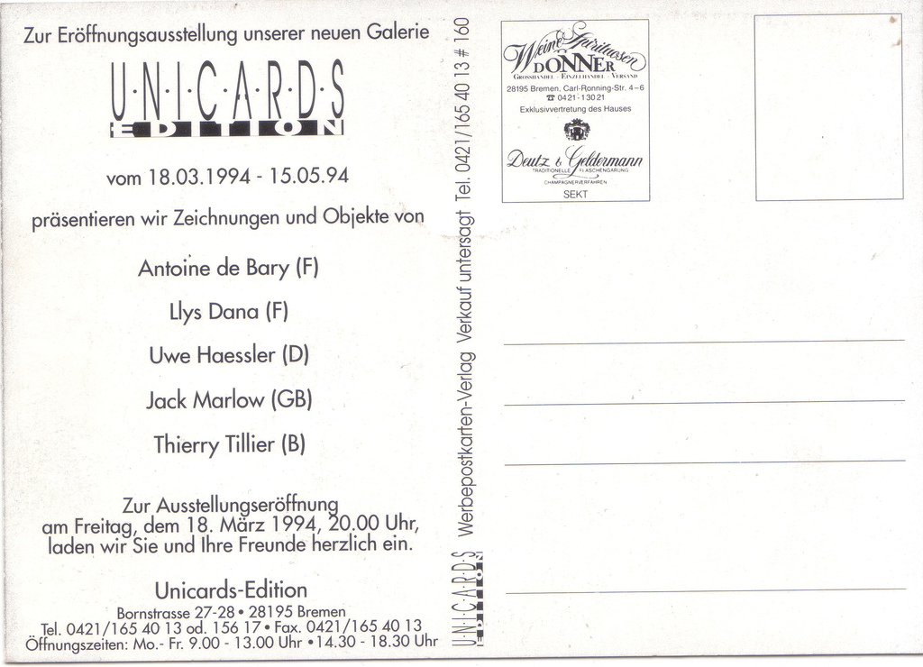 For your eyes only Unicards-Edition exhibition, March 18 – May 5, 1994 Bremen, Germany