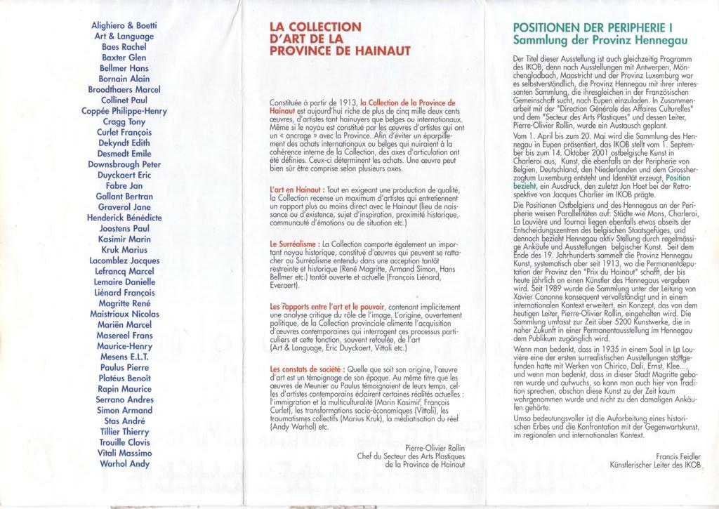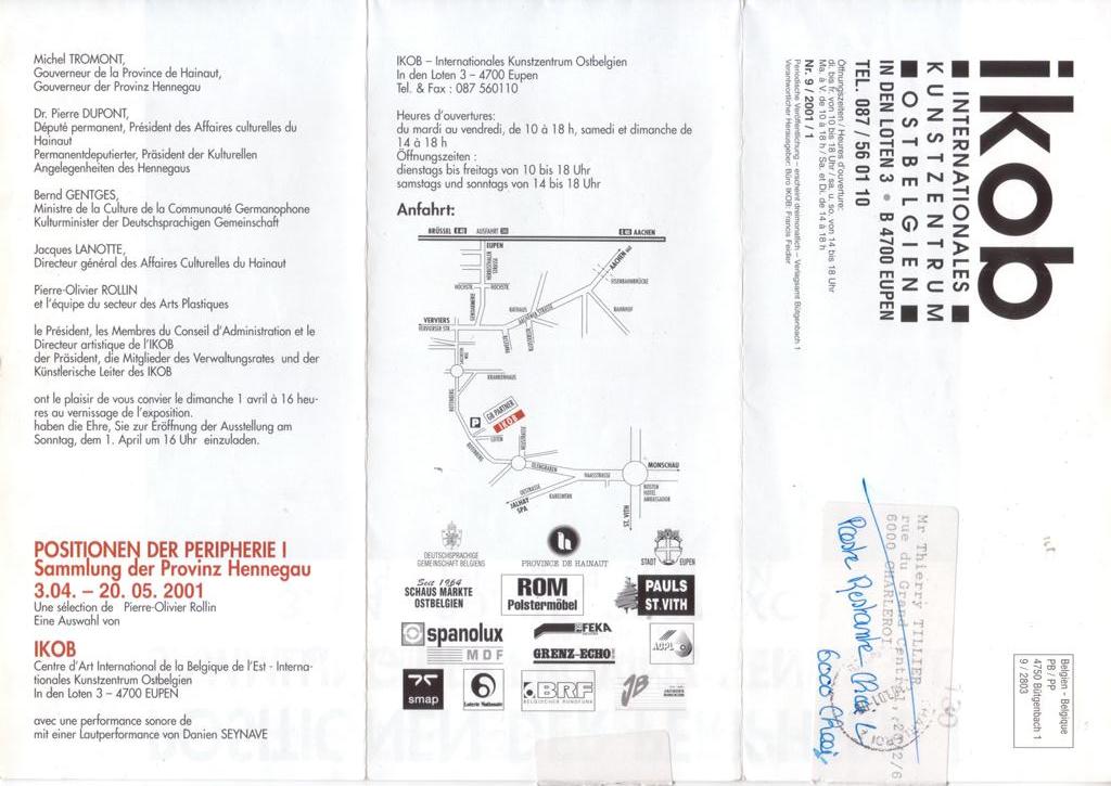 IKOB Internationales Kunstzentrum Ostbelgien, April 3 – May 20, 2001