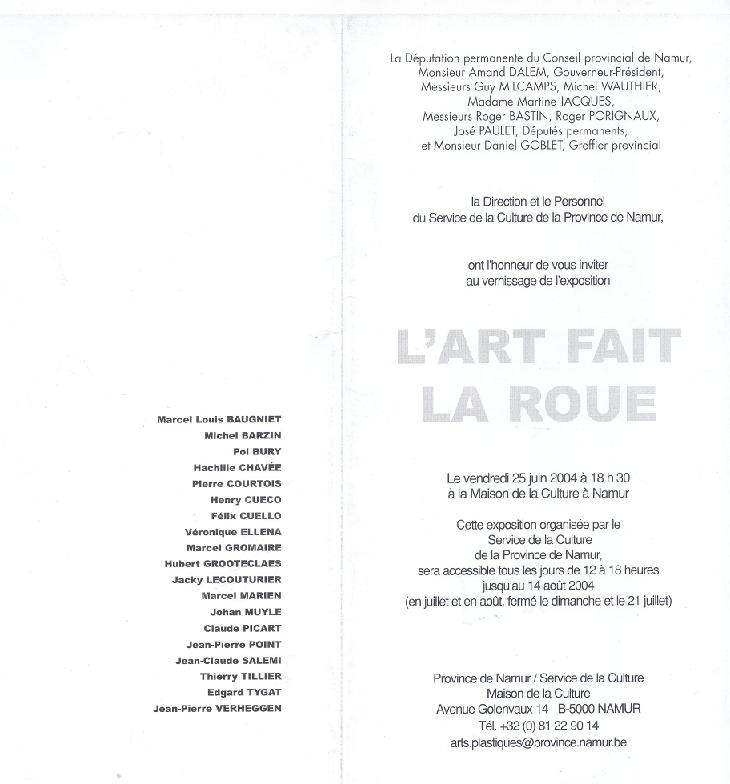 L'art fait la roue Maison de la Culture, June 25 – August 14, 2004 Namur, Belgium